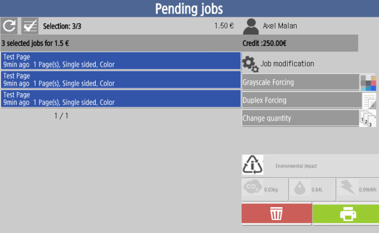 The Gespage solution allows for savings (see ROI calculation) by tracking the usages, applying a responsible print policy and offering the users to print only what they really need.